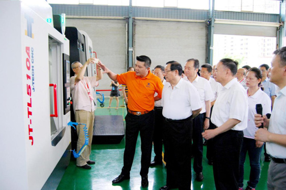 萬(wàn)鋼部長(zhǎng)考察嘉泰數(shù)控實(shí)施的“智能工廠示范工程項(xiàng)目”建設(shè)成果2016年6月20日,全國(guó)政協(xié)副主席、中國(guó)科協(xié)主席、國(guó)家科技部部長(zhǎng)萬(wàn)鋼和中國(guó)工程院院長(zhǎng)周濟(jì)等來(lái)自全國(guó)各地的眾多領(lǐng)導(dǎo)專(zhuān)家一行,在福建省常務(wù)副省長(zhǎng)張志南、泉州市委書(shū)記鄭新聰、市長(zhǎng)康濤等省市區(qū)領(lǐng)導(dǎo)的陪同下,蒞臨泉州市“數(shù)控一代”匯報(bào)現(xiàn)場(chǎng)。在洛江區(qū)智能裝備產(chǎn)業(yè)園的匯報(bào)現(xiàn)場(chǎng),嘉泰數(shù)控董事長(zhǎng)蘇亞帥就由嘉泰數(shù)控實(shí)施的“3C產(chǎn)業(yè)數(shù)字化智能工廠示范項(xiàng)目”作技術(shù)講解,以及匯報(bào)自主研發(fā)的“門(mén)型五軸立式加工中心JT-GL8-V”、高速鉆攻中心JT-TL510A以及3C產(chǎn)業(yè)智能手機(jī)金屬外殼加工自動(dòng)化生產(chǎn)線(xiàn)等最新成果。