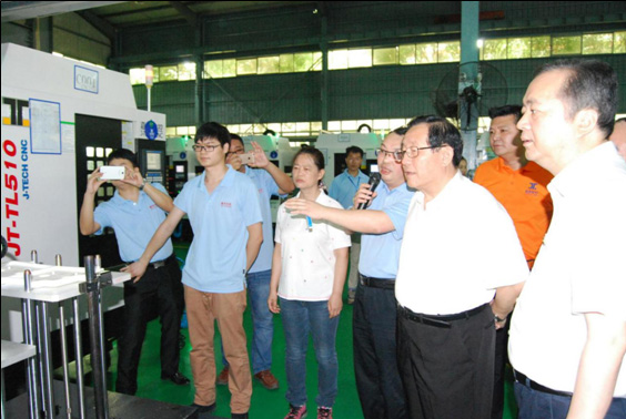 萬(wàn)鋼部長(zhǎng)考察嘉泰數(shù)控實(shí)施的“智能工廠示范工程項(xiàng)目”建設(shè)成果2016年6月20日,全國(guó)政協(xié)副主席、中國(guó)科協(xié)主席、國(guó)家科技部部長(zhǎng)萬(wàn)鋼和中國(guó)工程院院長(zhǎng)周濟(jì)等來(lái)自全國(guó)各地的眾多領(lǐng)導(dǎo)專(zhuān)家一行,在福建省常務(wù)副省長(zhǎng)張志南、泉州市委書(shū)記鄭新聰、市長(zhǎng)康濤等省市區(qū)領(lǐng)導(dǎo)的陪同下,蒞臨泉州市“數(shù)控一代”匯報(bào)現(xiàn)場(chǎng)。在洛江區(qū)智能裝備產(chǎn)業(yè)園的匯報(bào)現(xiàn)場(chǎng),嘉泰數(shù)控董事長(zhǎng)蘇亞帥就由嘉泰數(shù)控實(shí)施的“3C產(chǎn)業(yè)數(shù)字化智能工廠示范項(xiàng)目”作技術(shù)講解,以及匯報(bào)自主研發(fā)的“門(mén)型五軸立式加工中心JT-GL8-V”、高速鉆攻中心JT-TL510A以及3C產(chǎn)業(yè)智能手機(jī)金屬外殼加工自動(dòng)化生產(chǎn)線(xiàn)等最新成果。