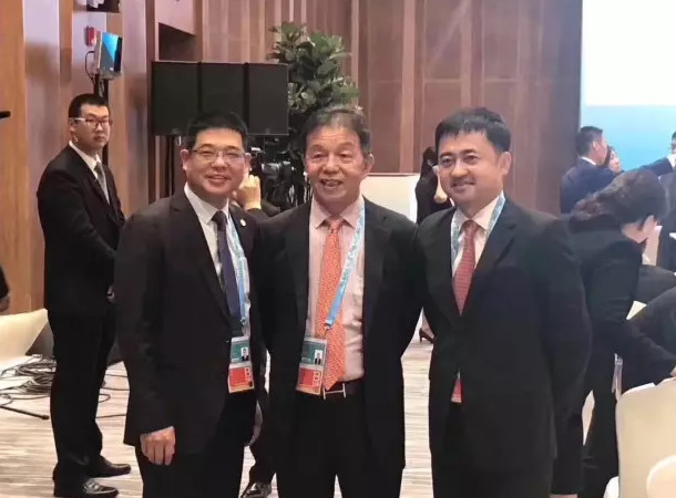 從左至右分別為匹克集團(tuán)董事長(zhǎng)許景南、恒安集團(tuán)CEO許連捷、嘉泰數(shù)控董事長(zhǎng)蘇亞帥